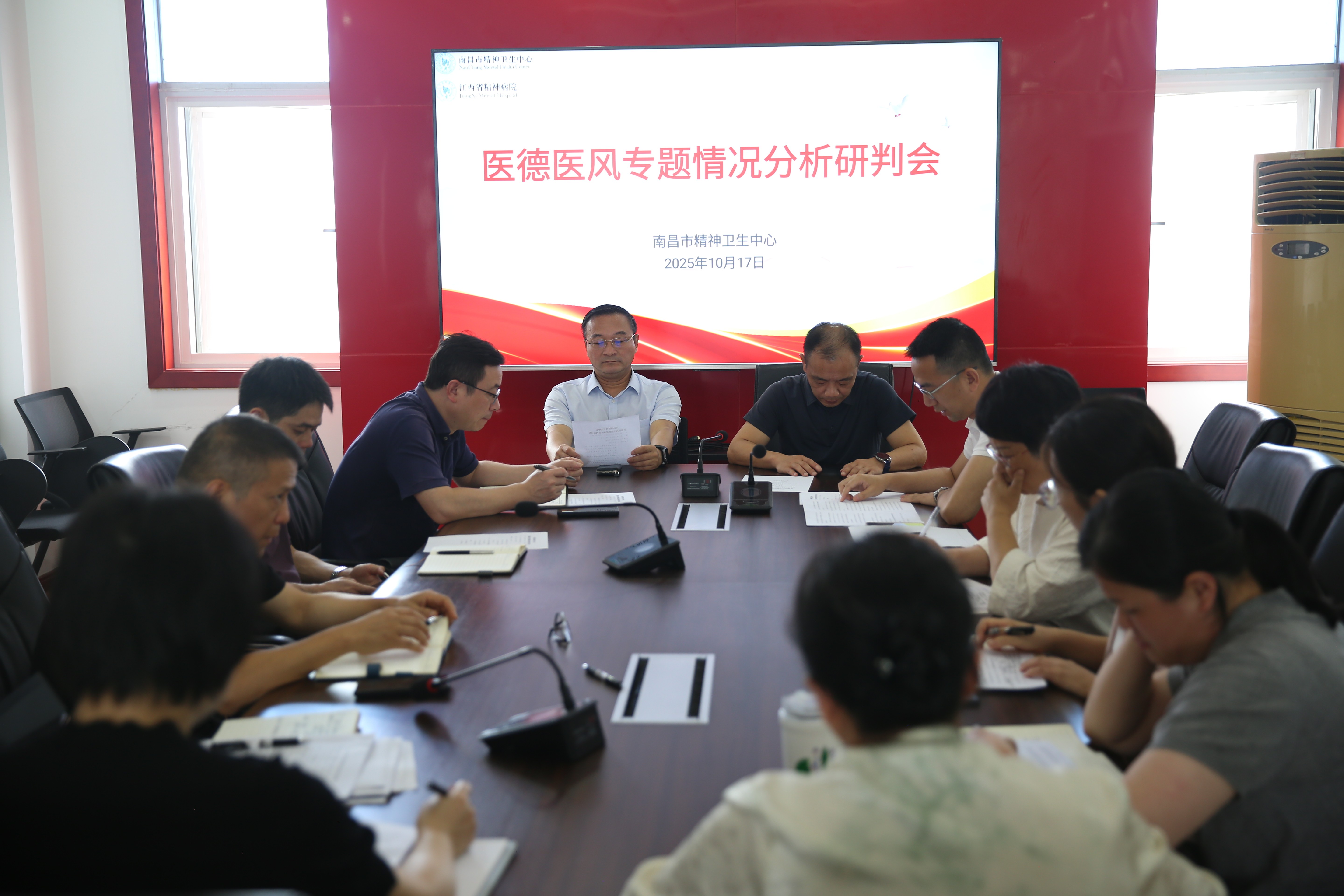 为持续深化医德医风建设,规范医疗服务行为,切实保障患者健康权益,2025年10月17日上午,医院在青山湖院区八楼会议室组织召开医德医风专题情况分析研判会。医院党政领导班子及院办、党办、监察室、医务科、护理部、药剂科等相关职能科室负责人参会,共同聚焦医德医风工作重点任务及痛点、难点,系统梳理工作进展,精准研判突出问题,全面部署下一阶段工作。
